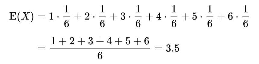 For example, if you keep throwing a dice many, many times, the probability of you getting each one is the same, then your expected value of throwing a dice is: